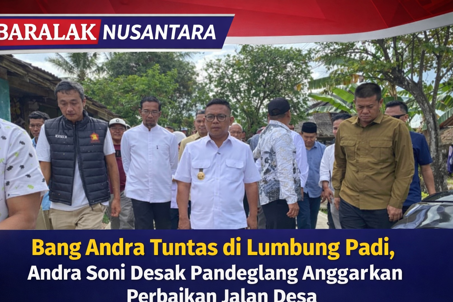 PANDEGLANG | BaralakNusantara.com – Andra Soni meninjau langsung proyek Program Bangun Jalan Desa Sejahtera (Bang Andra) yang telah rampung di ruas Jalan Sukadame–Kobangkondang, Kabupaten Pandeglang, Kamis (26/2/2026).