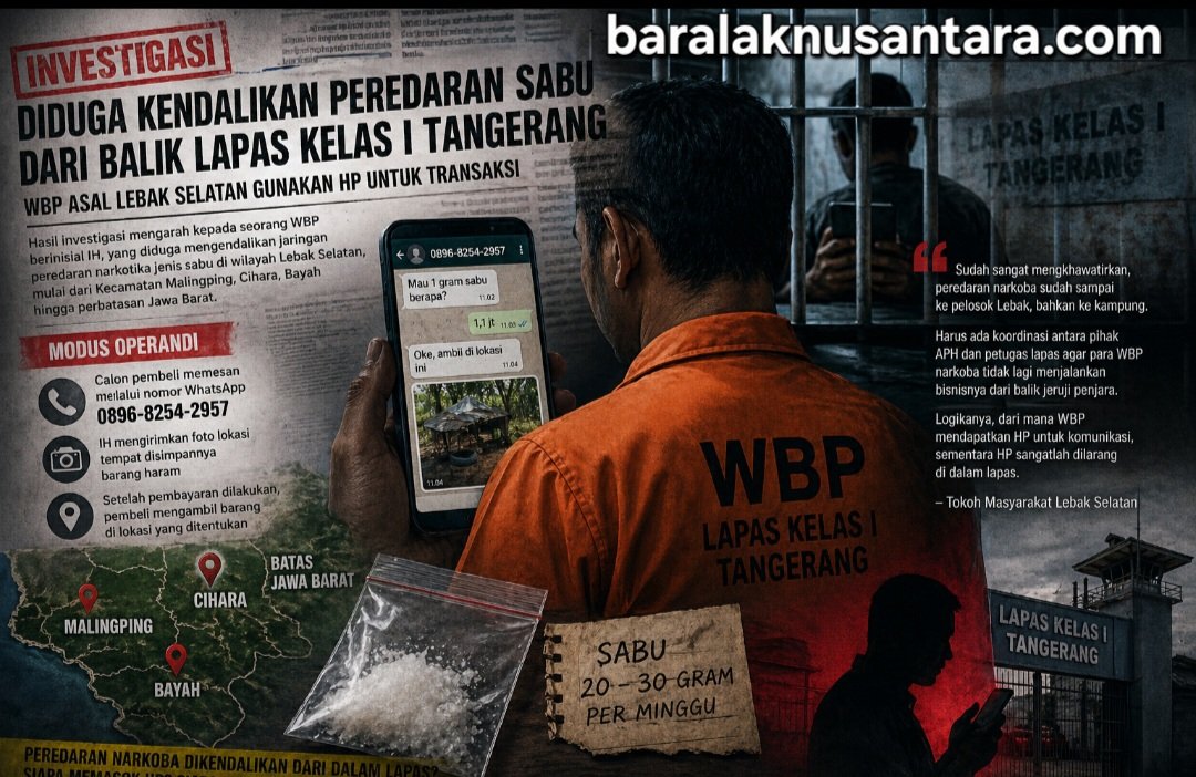 Peredaran narkotika jenis sabu yang semakin merambah hingga pelosok wilayah Lebak Selatan kini mengarah pada temuan serius. Hasil penelusuran tim investigasi Baralak Nusantara mengindikasikan adanya pengendalian jaringan dari dalam lembaga pemasyarakatan.